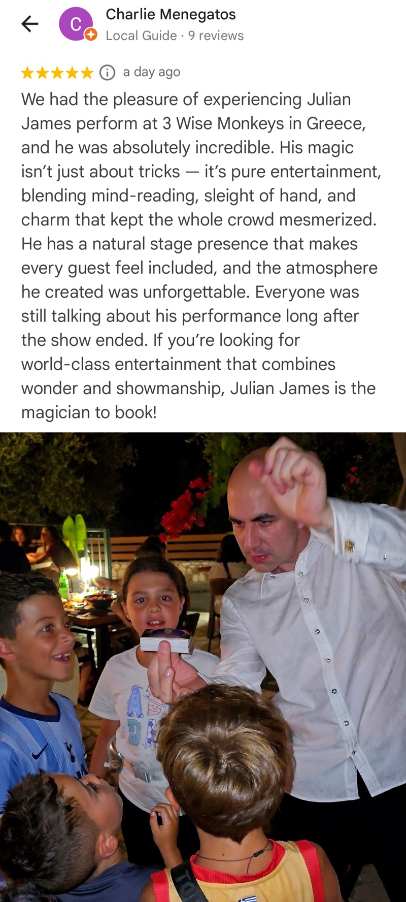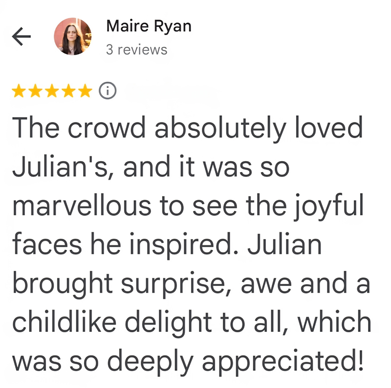 "Julian was a STAR performer at our Christmas event. He
