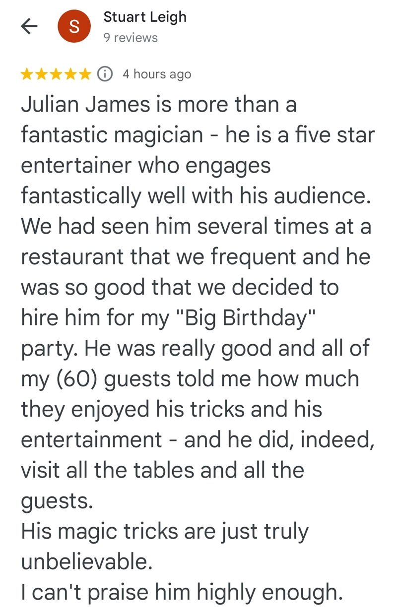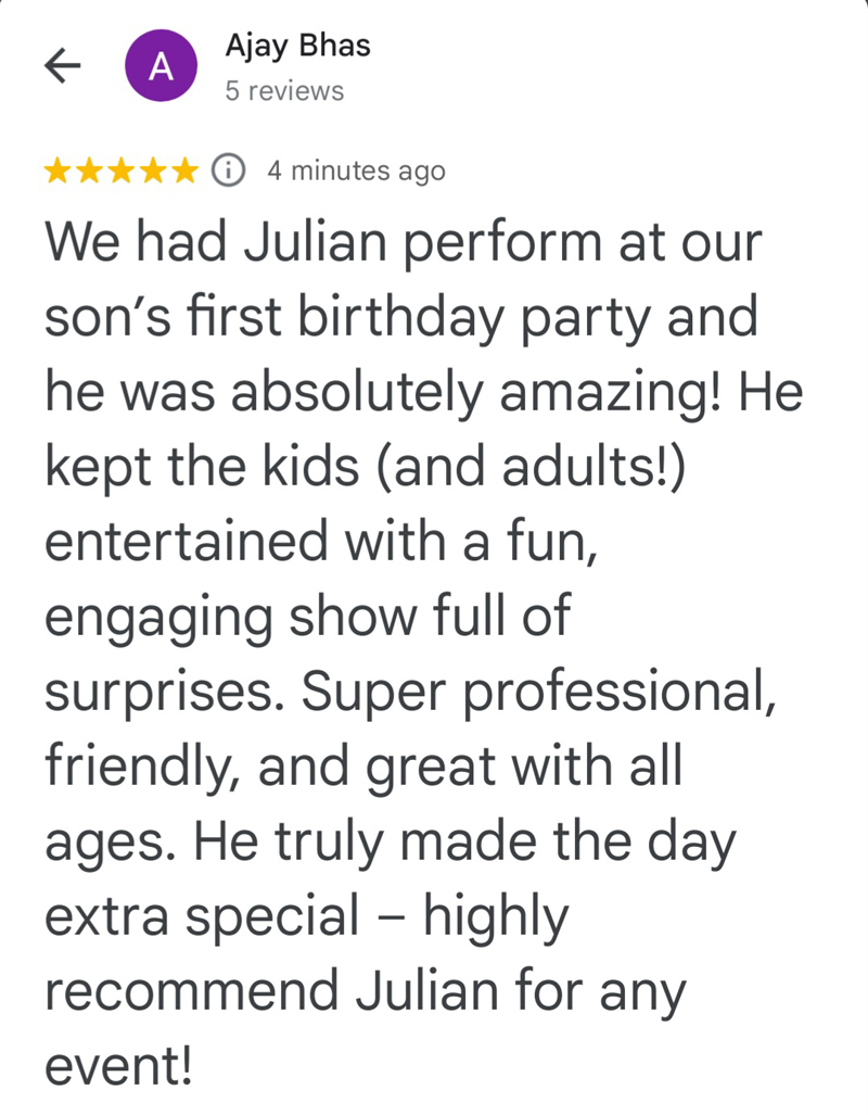 "Julian was one of the best features of our party! His