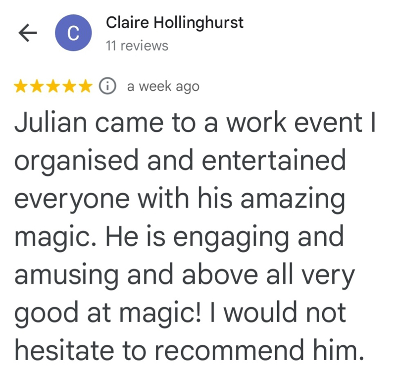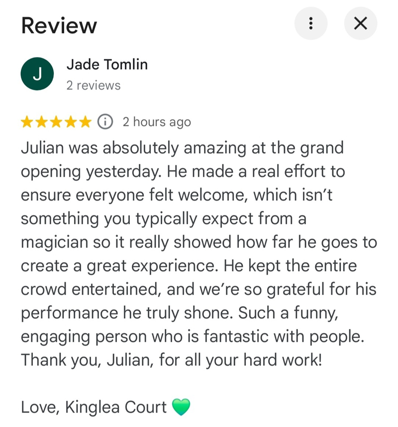 "Julian was a STAR performer at our Christmas event. He