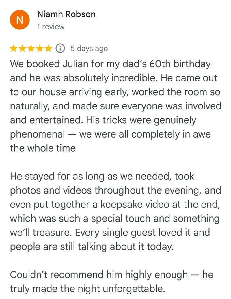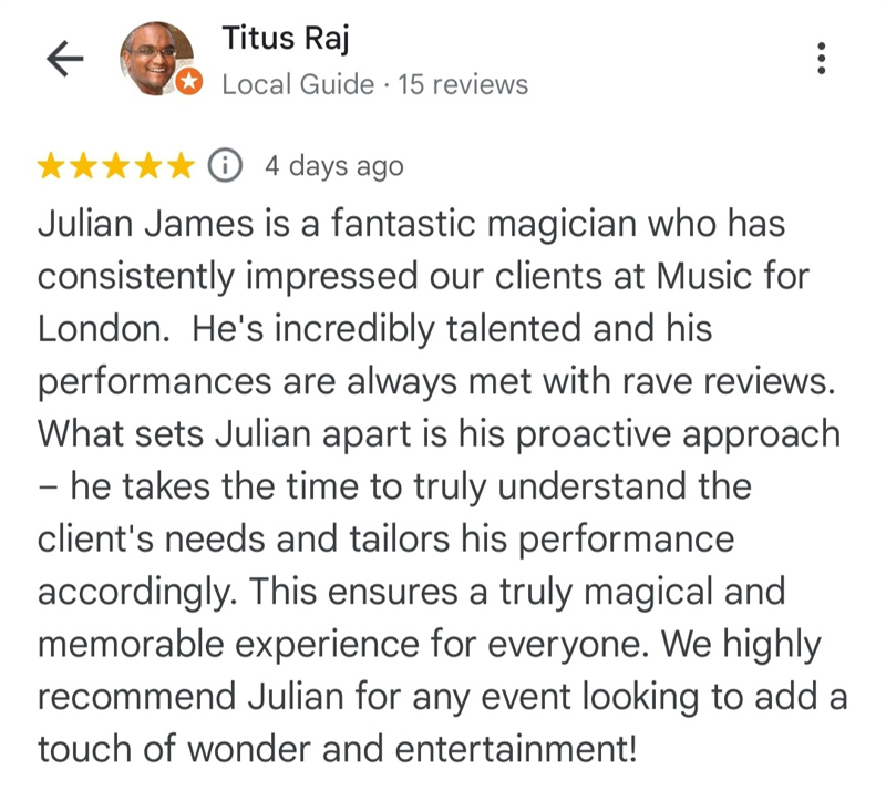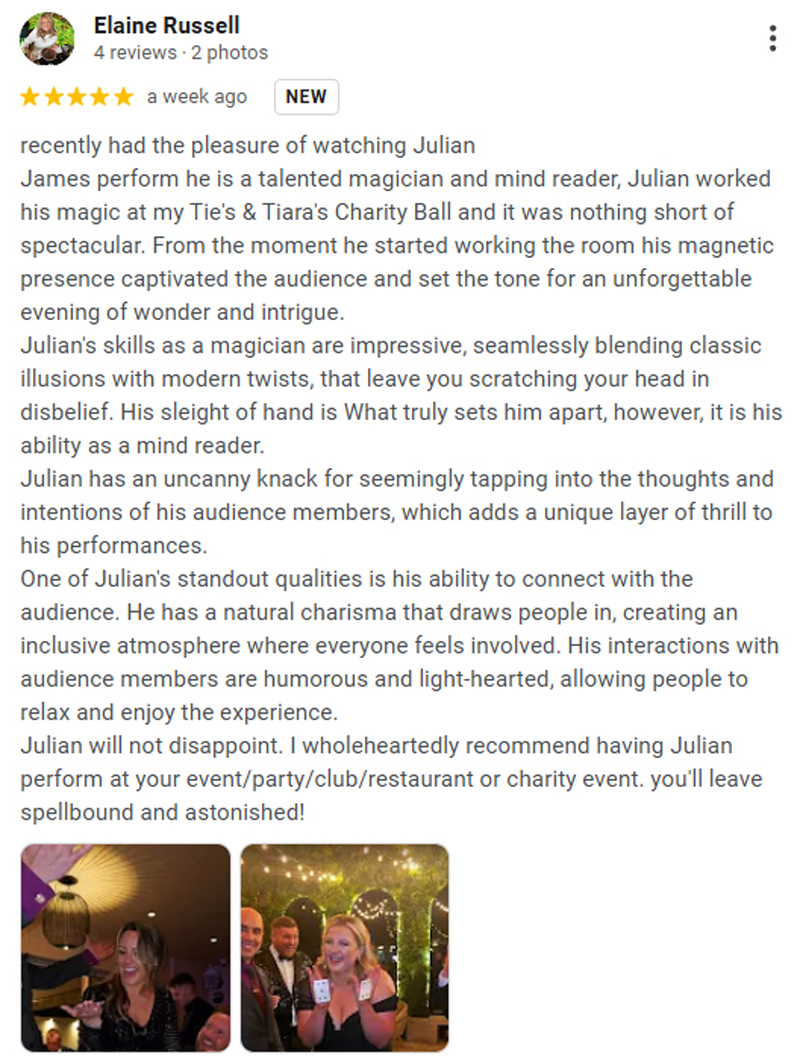 "Julian James was a fantastic success at our event! Not