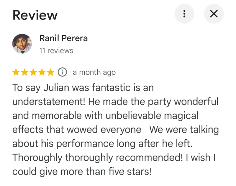 "Julian was one of the best features of our party! His