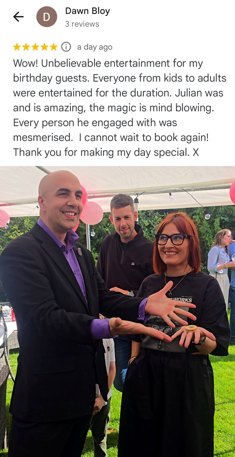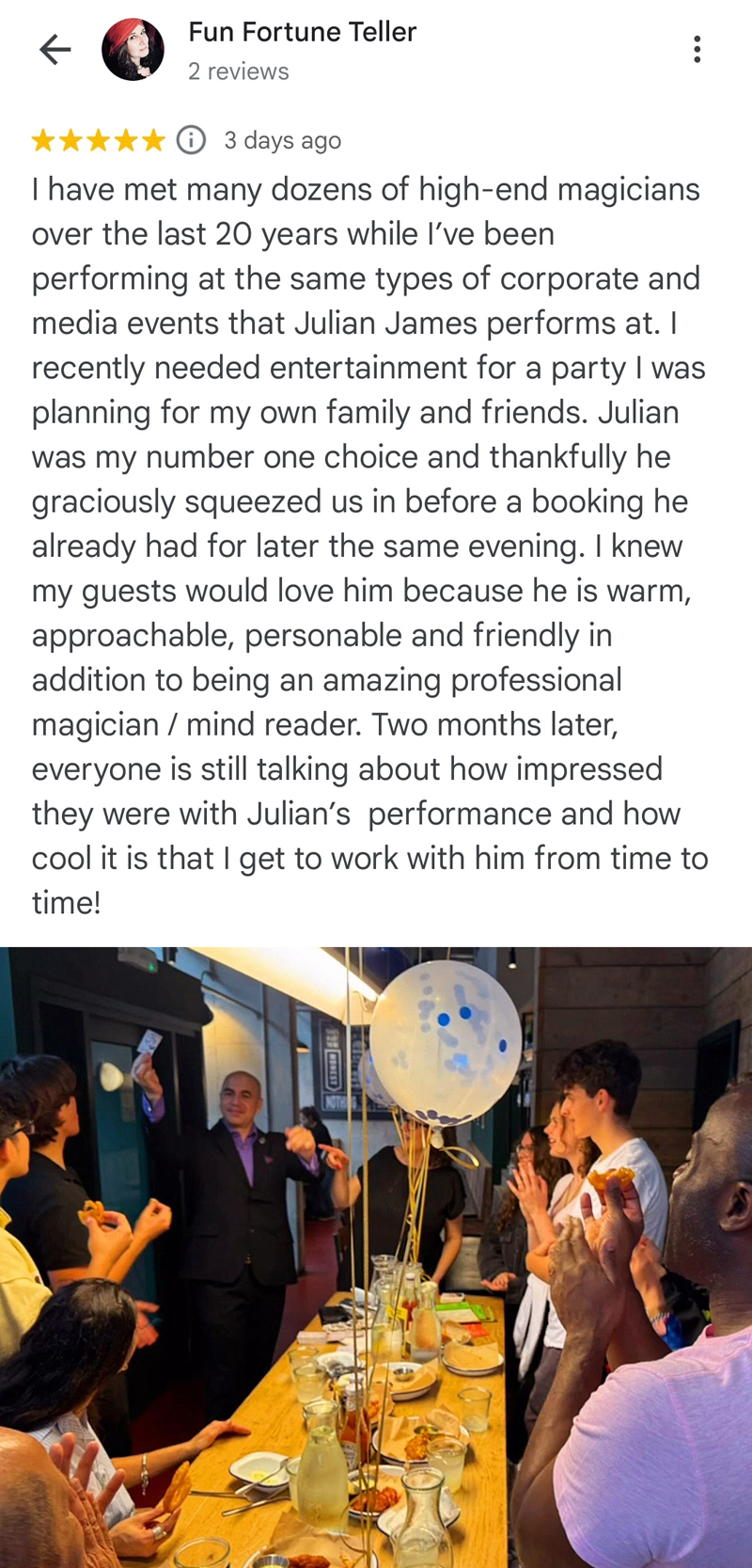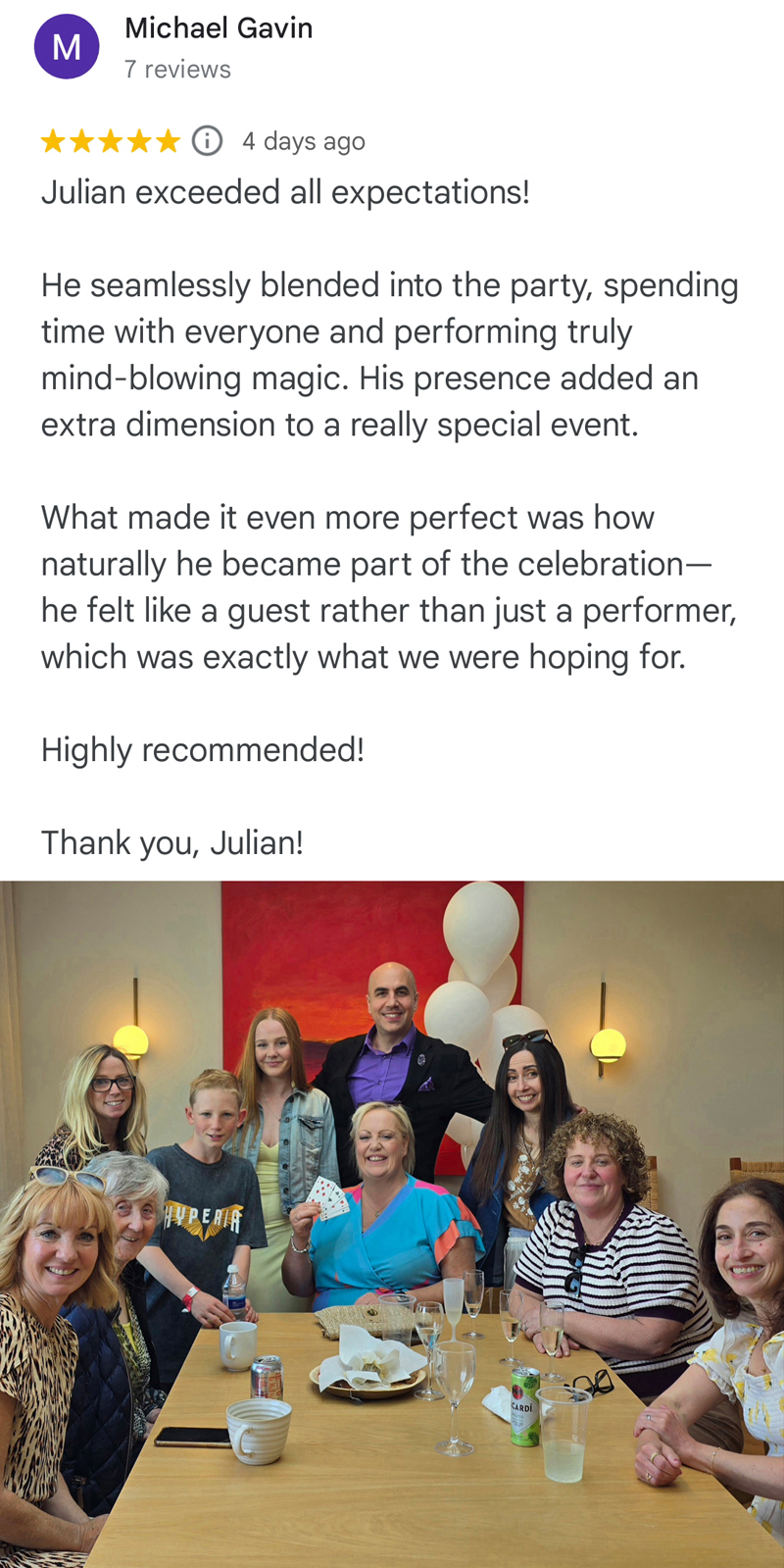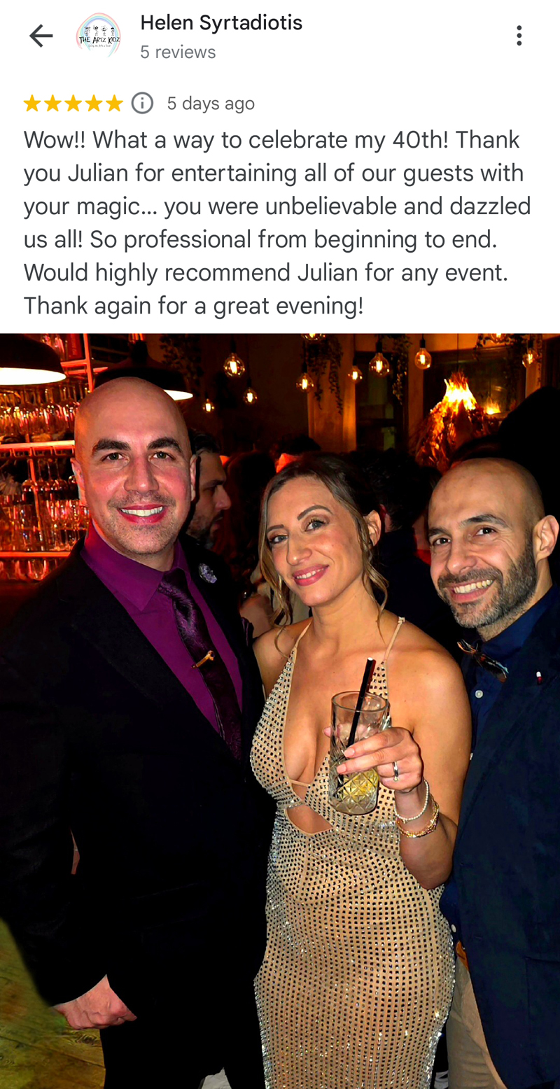 Julian walks into a room – whether it be a cocktail party, a surprise birthday, a private dinner